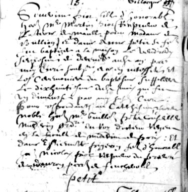 Elle est la filleule de Estiennette Pigeon 2 et Guillaume Petit 1.