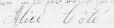 Elle est aussi connue sous le nom de Alice Coté. Elle est aussi connue sous le nom de Alice Côté 1, 2. Elle est aussi connue sous le nom de Alisse Cote 3. Elle est baptisée Marie Anna Alice Côté 4. Elle est la fille de Cyrille Côté 3, 5 et Rébecca Larochelle 5. Elle est la filleule de Éléonore Gardner 4 et Siméon Larochelle 4.