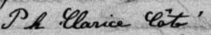 Elle est aussi connue sous le nom de Clarice Côté 1, 2. Elle est aussi connue sous le nom de Claris Côté 2, 3. Elle est aussi connue sous le nom de Clarisse Côté 4. Elle est aussi connue sous le nom de Clarice Lambert 5. Elle est aussi connue sous le nom de Philomène Clarisse Côté 6. Elle signe Philomène Clarice Côté 6. Elle est la fille de Isaïe Côté 6 et Marie Sévigny 6.