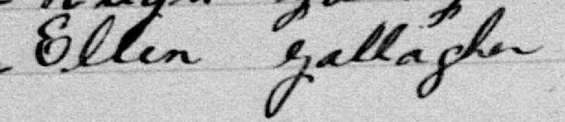 Elle est aussi connue sous le nom de Elinor Galagher 1. Elle signe Ellen Gallagher 2, 3, 4, 5. Elle est la fille de Francis Gallagher 2, 5 et Eleanor Mullavy 2. Elle est la filleule de Ann Travers 2 et Michael Mullavy 2.