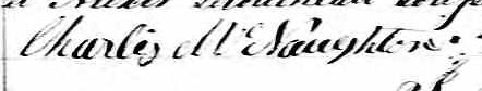 Il est aussi connu sous le nom de Charles Naughton 1. Il est aussi connu sous le nom de Charles Naughten 2. Il est baptisé Charles Naughton 3. Il signe Charles McNaughton 4, 5, 6. Il est le fils de Guillaume Naughton 7 et Catharine Murphy 8. Il est le filleul de Hélène Horan 3 et Patrice Sheridan 3.