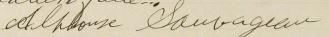 Il signe Alphonse Sauvageau 1. Il est le fils de Misaël Sauvageau 1 et Délima Lemay.
