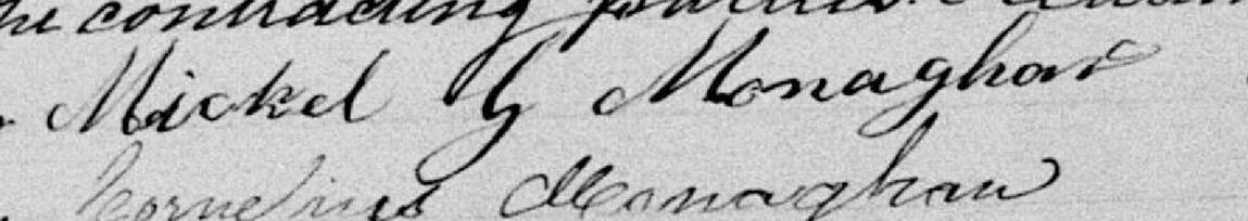 Il signe Michael G Monaghan 1. Il est baptisé Michael Monaghan 1, 2, 3, 4. Il est le fils de Michael Monahon 1, 2 et Margaret Blany 1, 2. Il est le filleul de Anne Melly 2 et Charles Melly 2.