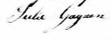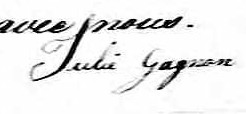 Elle signe Julie Gagnon 1, 2, 3, 4, 5, 6, 7, 8, 9. Elle est la fille de Bénoni Gagnon et Marguerite Larochelle.