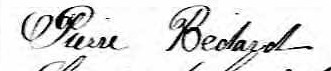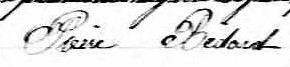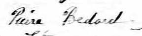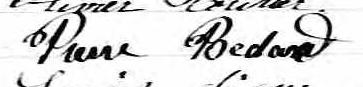 Il est aussi connu sous le nom de Peter Bedard 1. Il signe Pierre Bédard 2, 3, 4, 5, 6, 7, 8, 9, 10, 11, 12, 13, 14, 15, 16, 17, 18, 19. Il signe Pierre Bedard 20, 21. Il est le fils de Pierre Bédard et Agathe Bedard.