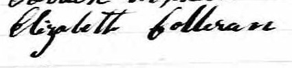 Elle est aussi connue sous le nom de Elisabeth Osborne 1. Elle est aussi connue sous le nom de Elisabeth Colloran. Elle signe Elizabeth Colloran 2, 3, 4, 5, 6. Elle signe Elizabeth Colleran 5, 6, 7, 8, 9, 10, 11, 12, 13, 14, 15, 16. Elle est la fille de Thomas Colloran et Bridget Foy.