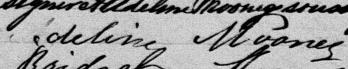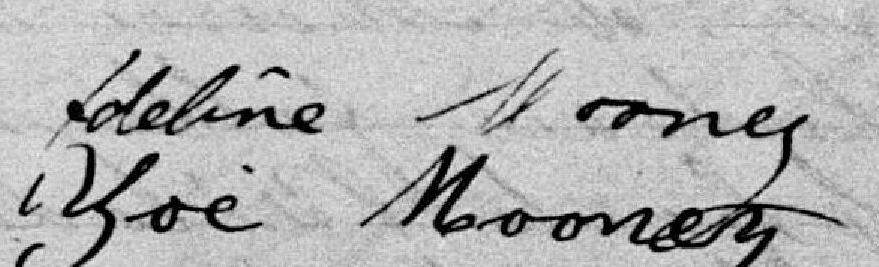 Elle signe Adeline Mooney 1, 2, 3, 4. Elle est baptisée Sophie Adéline Mooney 5 le 4 décembre 1865. Elle est la fille de Neil Mooney 4, 5 et Sophie Nolet 4, 5. Elle est la filleule de Mary McCartney 5 et Thomas Murphy 5.