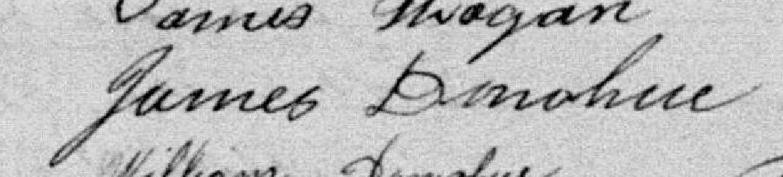 Il est aussi connu sous le nom de James Donoghoe 1. Il est aussi connu sous le nom de James Donaghue 2. Il est aussi connu sous le nom de James Donahue 3. Il est aussi connu sous le nom de James Donoghue 4. Il est le fils de Patrick Donahoe 1 et Maria Gaitly 1. Il est le filleul de Margaret Carson 1 et Patrick Donoghoe 1.