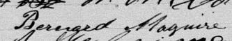 Il est aussi connu sous le nom de Bernard McGuire 1. Il signe Bernard Maguire 1, 2. Il est le fils de Barnaby McGuire 1 et Catherine Managhan 1.