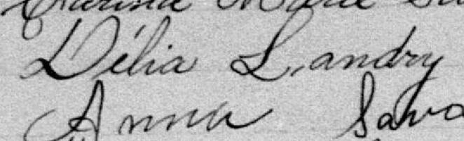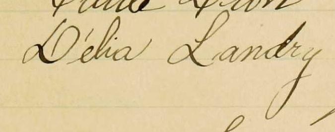 Délia Landry, Achille Landry, Marie Rosalie Zencide Landry, Joseph Philéas Landry, Charles Landry, Délima Landry, Louis Landry, Rose-Délima Dugrenier dit Perron et Jean Landry résident à Saint-Sylvestre en 1881 15. Délia Landry est de religion catholique de 1881 à 1901 1, 7, 9. Elle est d'origine ethnique française de 1881 à 1901 1, 9. Valeda Landry, Arthur Landry, Eugenie Landry, Louis Alfred Landry, Marie Odiana Landry, Délia Landry, Achille Landry, Marie Rosalie Zencide Landry, Joseph Philéas Landry, Charles Landry, Délima Landry, Louis Landry, Rose-Délima Dugrenier dit Perron et Jean Landry résident à Saint-Sylvestre en 1891 16. Elle sait lire et écrire de 1891 à 1901 7, 9. Délia Landry réside à Saint-Sylvestre, Saint-Sylvestre en 1899 4. Elle est de nationalité canadienne en 1901 9. Délia Landry et Odile Dion résident à Saint-Sylvestre, Saint-Sylvestre en 1901 6. Elle parle français en 1901 9. Délia Landry et Odile Dion résident sur un terrain de 135 acres avec 1 maison de 5 chambres et 2 bâtiments agricoles à Sainte-Marie Ouest, Saint-Sylvestre le 19 avril 1901 20, 21.