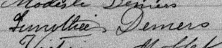 Il est aussi connu sous le nom de Thimoté Demers 1. Il est aussi connu sous le nom de Thimothée Demers 2, 3, 4, 5. Il est aussi connu sous le nom de Timothée Demers 3, 6, 7, 8, 9, 10, 11. Il est aussi connu sous le nom de Thimothe Demers 12. Il est aussi connu sous le nom de Timothé Demers 7. Il est aussi connu sous le nom de Timothee Demers 13. Il est baptisé Louis Timothé Demers 14. Il signe Thimothee Demers 4, 13. Il signe L. T Demers 10. Il signe L. Thimothée Demers 4. Il signe L T Demers 11. Il est le fils de Modeste Demers 3, 7, 14 et Marie Odile Fréchette 3, 14. Il est le filleul de Marguerite Demers 14 et Louis Fréchette 14.