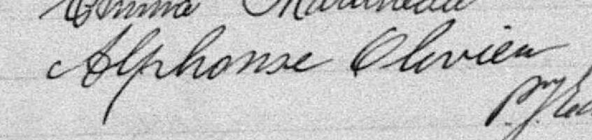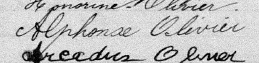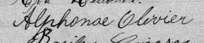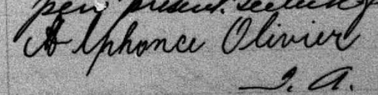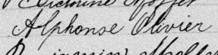 Il est aussi connu sous le nom de Alphonse Olivier 1, 2, 3, 4, 5, 6, 7, 8, 9. Il est baptisé Nazaire Marie Joseph Alphonse Olivier 10. Il signe Alphonce Olivier 3. Il est le fils de Louis Arcade Olivier 8, 10 et Rose Gingras 10. Il est le filleul de Adélaide Fréchette 10 et Nazaire Gingras 10.