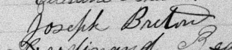 Il est aussi connu sous le nom de Joseph Breton 1, 2. Il est baptisé Joseph Cyprien Breton 3. Il est le fils de Jean Baptiste Ely dit Breton 2, 3 et Eléonore Fortier 3. Il est le filleul de Georgianna Bergeron 3 et Phileas Breton 3.