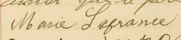 Elle est de nationalité française en 1871 1. Marie Lafrance est écolière en 1871 1. Zéphirin Lacroix, Marie Georgiana Sainte-Croix, Alfred Lafrance, George Lafrance, J Baptiste Lafrance, Benjamin Lafrance, Marie Lafrance, Aurélie Lacombe, Benjamin Dubois dit Lafrance, Victoire Sainte-Croix et Victor Lacombe résident sur le premier rang 1 minot de carottes sur le premier rang sur le premier rang sur le premier rang 1 minot de carottes sur le premier rang sur le premier rang à la Division 1, Saint-Nicolas, Lévis, Québec en 1871 29, 30, 31, 32. Marie Lafrance est de religion catholique de 1871 à 1901 1, 8, 21, 22. Marie Lafrance réside à Saint-Nicolas, Chaudière-Appalaches, Québec de 1876 à 1879 2, 5. Marie Lafrance et François Xavier Desrochers résident à Saint-Nicolas de 1876 à 1901 3, 4, 6, 9, 10, 11, 12, 13, 14, 15, 16, 17, 18, 19. George Desrochers, Angéline Desrochers, François Xavier Arthur Desrochers, Marie Lafrance et François Xavier Desrochers résident dans la division no. 1, Saint-Nicolas en 1881 33. Elle est d'origine ethnique française de 1881 à 1901 8, 22. Joseph François Léopold Desrochers, Joseph Nazaire Albert Desrochers, Marie Emma Desrochers, Joseph Benjamin Desrochers, George Desrochers, Angéline Desrochers, Marie Lafrance et François Xavier Desrochers résident dans une maison de bois d'un étage de 5 pièces à Sant-Nicolas, Lévis en 1891 34. Elle sait lire et écrire de 1891 à 1901 21, 22. Elle est de nationalité canadienne en 1901 22. Elle parle français en 1901 22. Marie Hélène Desrochers, Amelia Desrochers, Joseph Desrochers, Joseph Adolphe Wilfrid Desrochers, Marie Reine Alexina Caroline Desrochers, Marie Anne Rachel Regina Desrochers, Marie Eva Antoinette Desrochers, Joseph François Léopold Desrochers, Joseph Nazaire Albert Desrochers, Marie Emma Desrochers, Joseph Benjamin Desrochers, Angéline Desrochers, George Desrochers, Marie Lafrance et François Xavier Desrochers résident sur 1 lot de ville avec 5 bâtiments commerciaux dans la concession 2, cadastre 426, Saint-Nicolas le 10 avril 1901 35, 36, 37.