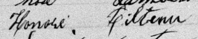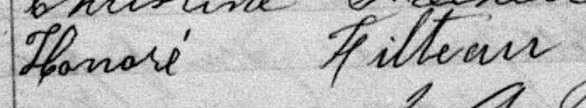 Il est baptisé Honoré Filteau 1, 2, 3, 4, 5, 6, 7, 8, 9, 10, 11, 12, 13, 14, 15, 16, 17, 18, 19, 20. Il signe Honore Filteau 20. Il est le fils de Joseph Octave Filteau 1, 9 et Christine Fréchette 1, 9. Il est le filleul de Christine Maufaite 9 et Augustin Filteau 9.