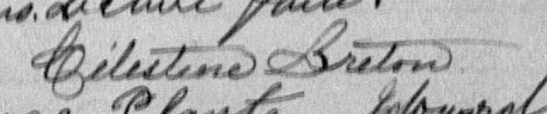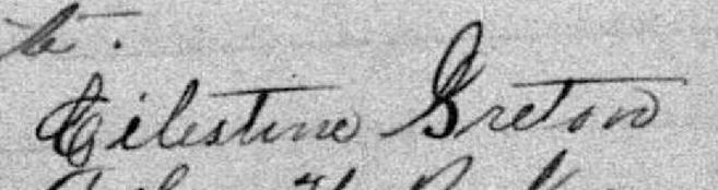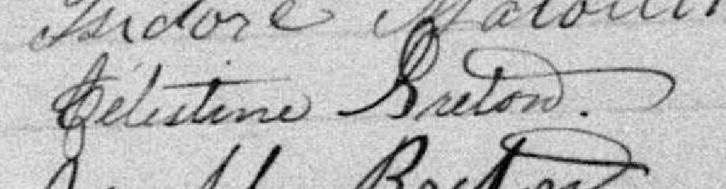 Elle est aussi connue sous le nom de Célestine Breton 1, 2, 3, 4, 5, 6, 7, 8. Elle est aussi connue sous le nom de Célistine Breton 4. Elle est baptisée Marie Célestine Breton 9. Elle est la fille de Jean Baptiste Ely dit Breton 7, 9 et Eléonore Fortier 9. Elle est la filleule de Domitilde Fortier 9 et Benjamin Filteau 9.