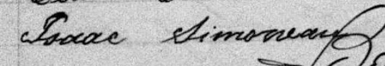 Il est aussi connu sous le nom de Sieur Isaac Simoneau 1. Il est aussi connu sous le nom de Isaac Simonneau 2, 3, 4. Il signe Isaac Simonea 1. Il signe Isaac Simoneau 3, 4, 5, 6, 7, 8, 9. Il est le fils de Maxime Simoneau 1, 7 et Eléonore Demers 1, 7.