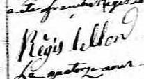 Il est aussi connu sous le nom de François Regis Leblond 1. Il est aussi connu sous le nom de Régis Leblong 2. Il est baptisé François Régis Leblond 3. Il signe Régis Leblond 1, 4, 5, 6.