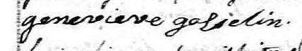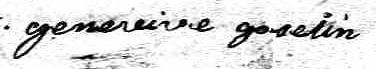 Elle est aussi connue sous le nom de Genevieve Gosselin 1, 2, 3. Elle est aussi connue sous le nom de Marie Geneviève Gosselin 2. Elle signe Geneveive Goselin 1.