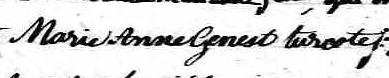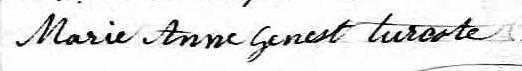 Elle est aussi connue sous le nom de Marianne Genet 1. Elle est aussi connue sous le nom de Dame Mariane Genest 2. Elle est aussi connue sous le nom de Dame Marie Anne Genest 3. Elle signe Marie Anne Genest Turcote 1, 2, 3.