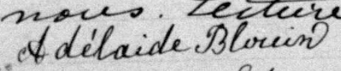 Elle est aussi connue sous le nom de Marie-Adélaïde Blouin. Elle est aussi connue sous le nom de Adélaïde Blouin 1, 2, 3, 4, 5, 6, 7, 8, 9, 10, 11, 12, 13, 14, 15, 16. Elle est aussi connue sous le nom de Adélaïde Létourneau 17, 18. Elle est aussi connue sous le nom de Marie Adélaïde Blouin 19. Elle est aussi connue sous le nom de Adelaide Letourneau 20. Elle signe Adélaide Blouin 19, 21, 22, 23. Elle signe Adée Blouin 9. Elle est la fille de Paul Blouin et Emilie Blouin.