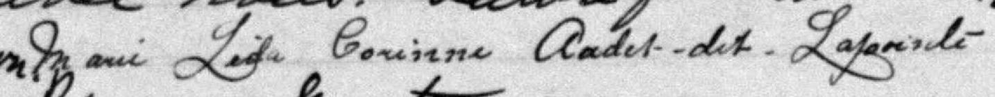 Elle est aussi connue sous le nom de Corinne Audette 1. Elle est aussi connue sous le nom de M. Corine Lapointe 2. Elle est aussi connue sous le nom de Marie Corine Audet dite Lapointe 3. Elle est aussi connue sous le nom de Marie Léda Corine Audet dite Lapointe 4. Elle est baptisée Marie Léda Lapointe 5. Elle signe Corine Lapointe 3. Elle signe Marie Léda Corinne Audet dite Lapointe 4. Elle signe Marie Léda Corinne Audet 4. Elle est la fille de Pierre Lapointe 4, 5 et Marie Léa Asselin 4, 5. Elle est la filleule de Delvina Gosselin 5 et Joseph Raymond Asselin 5.