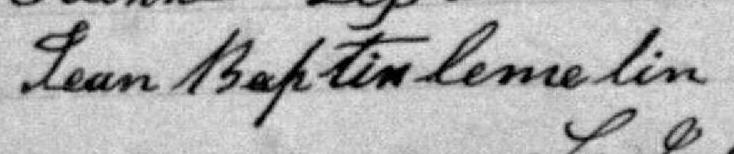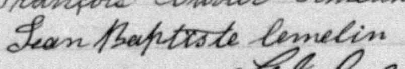 Il est aussi connu sous le nom de Jean-Baptiste Lemelin 1, 2, 3, 4, 5, 6, 7, 8, 9, 10. Il est aussi connu sous le nom de J. Bte Lemelin 11. Il est aussi connu sous le nom de Jean Lemelin 12, 13. Il signe Jean Baptiste Lemelin 1, 4, 5, 8, 10, 14. Il signe Jan Baptiste Lemelin 2. Il signe Jean Baptis Lemelin 6. Il signe Jan Baptis Lemelin 7. Il est le fils de Jean Baptiste Lemelin et Veronique Couture.