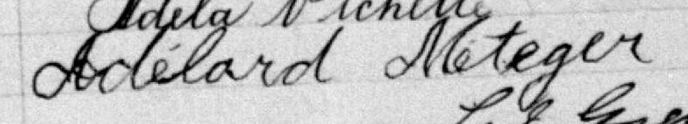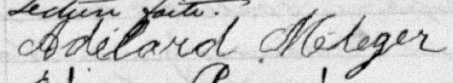 Il est aussi connu sous le nom de Adélard Metayer 1, 2. Il est aussi connu sous le nom de Adélard Métayer 3, 4. Il est aussi connu sous le nom de Adélard Méteyer 5. Il signe Adélard Méteger 2, 3. Il est aussi connu sous le nom de Adélar Météyer 6. Il est le fils de Joseph Alfred Metayer et Henriette Pichette.