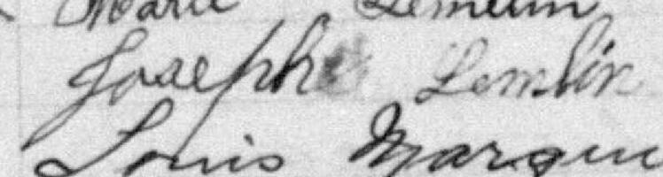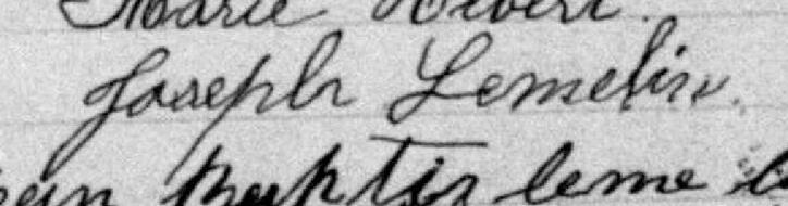 Il signe Joseph Lemlin 1. Il est aussi connu sous le nom de Joseph Lemelin 1, 2, 3, 4. Il est le fils de Jean-Baptiste Lemelin et Apoline Métivier.