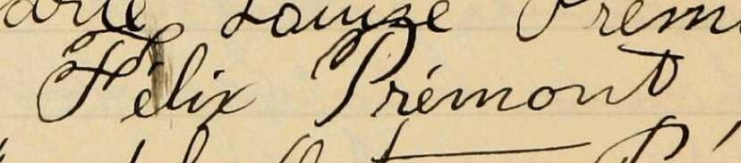 Il est aussi connu sous le nom de Félix Prémont 1. Il est baptisé Félix Eugène Prémont 2.