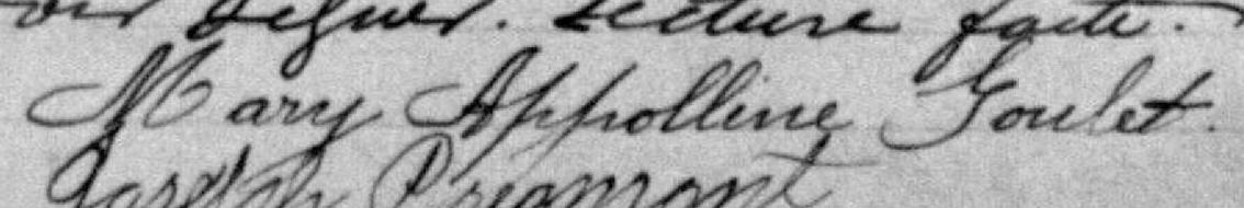 Elle est aussi connue sous le nom de Marie Goulet 1, 2. Elle est aussi connue sous le nom de Marie Apolline Goulet 3. Elle est aussi connue sous le nom de Mary Apolline Goulet 4, 5. Elle est aussi connue sous le nom de Marie Prémont 6. Elle signe Mary Appolline Goulet 4.
