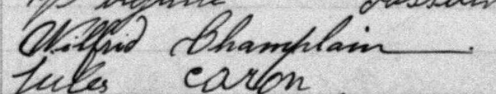Il est aussi connu sous le nom de François Xavier Wilfride Champlain 1. Il signe Wilfrid Champlain 1. Il est le fils de William Champlain 1 et Marie Hébert 1.