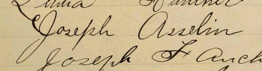 Joseph Asselin, Joseph Dolphis Asselin, Marie Aglaé Matilda Asselin, Joseph Adélar Asselin, Joseph Omer Asselin, Alexina Asselin, François Xavier Asselin, Justine Asselin et François Xavier Asselin résident à Sainte-Famille-de-l'Île-d'Orléans, Montmorency, Québec en 1881 6. Joseph Asselin est de religion catholique en 1881 2. Il est d'origine ethnique française en 1881 2. Joseph Asselin est cigarier en 1901 3. Joseph Asselin réside à Montréal, Île de Montréal, Québec en 1901 3.