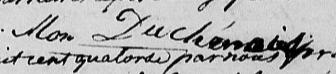 Il est aussi connu sous le nom de Sieur Maurice Duchénois 1. Il est aussi connu sous le nom de Maurice Duschenois 2. Il est aussi connu sous le nom de Sieur Maurices Duchesnois 3. Il est aussi connu sous le nom de Maurice Duchénois 4. Il est aussi connu sous le nom de Maurice Duchesnoy 5. Il est aussi connu sous le nom de Morisse Duchesnois 6. Il signe Morries Duchnoies 1. Il signe Morries Duchaney 2. Il signe Morrie Hnay 7. Il signe Morices Duchenois 3. Il signe Mor Duchénois 4. Il signe Mor Duchan 5. Il est aussi connu sous le nom de Maurice Duchenois 7, 8. Il est aussi connu sous le nom de Morries Duchany 8.
