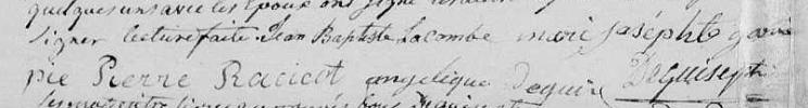 Elle naît avant 1791 2. Elle épouse Jean Baptiste Lacomble fils de Thérèse Poirier et Françosi Lacombe le 3 novembre 1812 à Sainte-Anne, Varennes en présence de Angelique Deguir, Louis Chapu, Joseph Pilet, Régis Gariépy, Jacques Chaperon, Joseph Lacoste et Pierre Racicot, le mariage est célébré par Francis-Joseph Deguise 1.