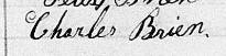 Il est baptisé Charles Brien 1, 2. Il est le fils de Hyacinthe Brien 1, 2 et Susanne Baudri 1. Il est le filleul de Marie Marthe Pilet 1 et Joseph Goupille 1.