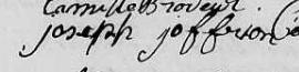 Il est aussi connu sous le nom de Joseph Geoffryon 1. Il est baptisé Joseph Geoffrion 2, 3, 4, 5, 6, 7, 8, 9. Il signe Josephe Joffrion 4. Il signe Joseph Joffrion 1, 10. Il signe Joseph Jofrion 8, 9. Il est le fils de Pierre Geoffrion 2, 3, 4, 6, 7, 8 et Marie-Louise Brunel 2, 4. Il est le filleul de Marie Charlotte Hébert 2 et Jacques Brunel 2.