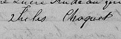Il est aussi connu sous le nom de Jules Choquet 1, 2, 3, 4, 5, 6, 7, 8. Il est aussi connu sous le nom de Jules Choquette. Il est baptisé Judes Choquet 9. Il signe J. Choquet 4. Il est le fils de Amable Choquet 1, 2, 9 et Marie Reine Lussier 9. Il est le filleul de Magdelene Lucier 9 et Jules Choquet 9.
