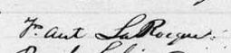 Il est aussi connu sous le nom de Écuyer F. A. Larocque 1. Il signe Frs. Ant LaRocque 1.