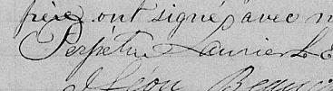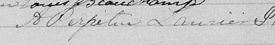 Elle est aussi connue sous le nom de Antoinette Perpétue Lorier 1, 2. Elle est aussi connue sous le nom de Antoinette Perpetue Laurier 3, 4, 5, 6. Elle est aussi connue sous le nom de Perpétue Lauriers 7. Elle est aussi connue sous le nom de Dame Antoinette Perpetue Laurier 8. Elle est aussi connue sous le nom de Dame Antoinette Perpétue Laurier 9, 10, 11. Elle signe Antoinette Perpétue Laurier 1, 12, 13, 14, 15, 16, 17, 18, 19, 20, 21. Elle signe A Perpétue Laurier 7. Elle signe Perpétue Laurier 10.