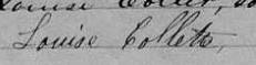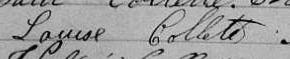 Elle est aussi connue sous le nom de Louise Collette 1, 2, 3, 4, 5, 6, 7, 8, 9, 10. Elle est aussi connue sous le nom de Louïse Collet 11. Elle est aussi connue sous le nom de Lucie Collet 12. Elle est aussi connue sous le nom de Louise Colette 13. Elle est aussi connue sous le nom de Marie Louise Collet 14. Elle est baptisée Louise Collet 5, 9, 15, 16, 17, 18, 19, 20, 21, 22, 23, 24. Elle est la fille de Christophe Collet 2, 15 et Rosalie Ledoux 2. Elle est la filleule de Charlotte Brousseau 15 et Jean Pierre Brunelle 15.