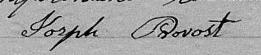 Il est aussi connu sous le nom de J. Provost 1, 2. Il est baptisé Joseph Provost 3, 4, 5, 6, 7, 8, 9, 10, 11, 12, 13, 14, 15, 16, 17, 18, 19, 20, 21, 22, 23, 24, 25, 26, 27, 28, 29, 30. Il signe Josph Provost 18. Il est le fils de Pierre Provost 3, 5 et Marie Marguerite Maugé 3, 5. Il est le filleul de Marie Provost 3 et Joseph Maugé 3.