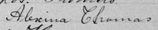 Elle est aussi connue sous le nom de Alexina Thomas 1, 2, 3, 4. Elle est aussi connue sous le nom de Marie Alexina Thomas 3. Elle est baptisée Marie Victoria Alexina Thomas 5. Elle est la fille de Louis Thomas 3, 5 et Victoria Dubreuil 3, 5. Elle est la filleule de Adélaïde Lorion 5 et Magloire Dubreuil 5.