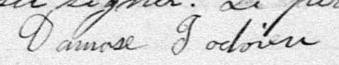 Il est aussi connu sous le nom de Damas Jodoin 1. Il est aussi connu sous le nom de Damase Jodoien 2, 3, 4, 5, 6, 7, 8, 9, 10, 11, 12, 13, 14, 15, 16, 17, 18, 19, 20. Il est aussi connu sous le nom de Damase Jodoin 3, 4, 5, 6, 8, 9, 12, 13, 14, 15, 16, 17, 19, 21, 22, 23, 24, 25, 26, 27, 28, 29, 30, 31, 32. Il est aussi connu sous le nom de Joseph Damase Jodoin 11, 33. Il est baptisé Damace Jodoin 34. Il signe Joseph Damase Jodoien 33. Il est le fils de François Xavier Jodouin 33, 34 et Ursule Tetreault 33, 34. Il est le filleul de Rosalie Charon 34 et Michel Tétreau 34.