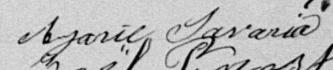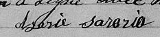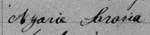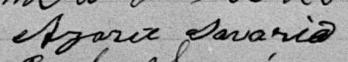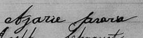 Il est baptisé Azarie Savariat 1, 2, 3, 4, 5. Il signe Azarie Savaria 2, 4, 6, 7, 8, 9, 10, 11, 12, 13, 14, 15, 16, 17, 18, 19, 20, 21, 22, 23, 24, 25, 26, 27, 28, 29, 30, 31, 32, 33. Il signe Azare Savarie 10. Il est le fils de Ambroise Savaria 1, 2, 9 et Zoé Choquet 1, 9. Il est le filleul de Marie Eulalie Choquet 1 et Joseph Choquet 1.