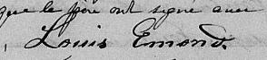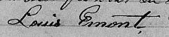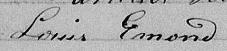 Il est aussi connu sous le nom de Louis Emond 1, 2, 3, 4, 5, 6, 7, 8, 9, 10, 11. Il est aussi connu sous le nom de Louis Hémond 12. Il est baptisé Louis Hémond 13, 14. Il signe Louis Emont 4, 5, 12, 15. Il signe L. Emont 2. Il est le fils de Aléxandre Emond 2, 13 et Amable Dubreuil 2, 13. Il est le filleul de Martine Dubreuil 13 et Louis Hémond 13.
