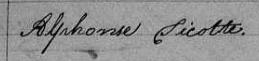 | Alphonse Sicotte (1847 - ) | Pierre Cicot (1821 - ) | Pierre Sicotte ( - 1836) | Toussaint Sicotte |   |