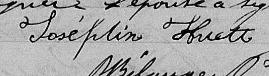 Elle est aussi connue sous le nom de Josephine Huet 1, 2. Elle est aussi connue sous le nom de Josephine Huet-Dulude 3. Elle est aussi connue sous le nom de Josephine Huette 4. Elle est aussi connue sous le nom de Joséphine Aubertin dite Huet 5. Elle est aussi connue sous le nom de Joséphine Huet 6, 7. Elle signe Joséphin Huett 2. Elle est la fille de Antoine Huet dit Dulude 2 et Josephte Aubertin 2.