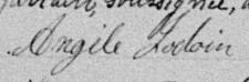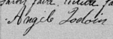 Elle est aussi connue sous le nom de Angèle Jodoin 1, 2, 3, 4, 5, 6, 7, 8, 9, 10, 11, 12, 13, 14, 15, 16, 17, 18, 19, 20, 21, 22, 23. Elle est aussi connue sous le nom de Angèle Dubois 24. Elle est aussi connue sous le nom de Angèle Quintin 25, 26. Elle est baptisée Marie Angèle Jodoin 27. Elle est la fille de Théophile Jodouin 3, 27 et Marie Angele Savaria 3, 27. Elle est la filleule de Sophie Geoffrion 27 et Charles Lussier 27.