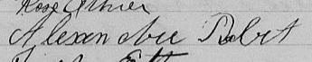 Il est aussi connu sous le nom de Alexandre Robert 1, 2, 3. Il signe Alexandre Robrt 1. Il est le fils de Alexis Robert 1 et Émélie Savaria 1.